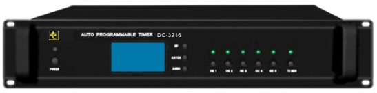 DC-3216一款实现系统定时功能的主设备,可以定时接通和关闭后排的电源输出,方便系统设备进行定时开关机。它有6路定时输出通道(五路电源输出和一路短路输出),短路输出可用于激活电源时序器DC-3228。