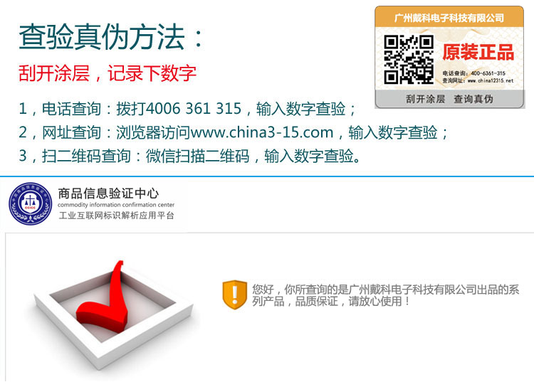 公司现启用全新产品防伪码,产品一物一码,可通过下列方法查验产品真伪,请谨防假冒!